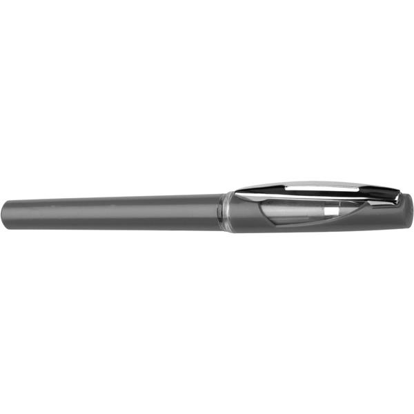 Długopis żelowy z zatyczką, dodatkowy otwór w zatyczce, posiada czarny wkład, produkt wykonany z ABS
