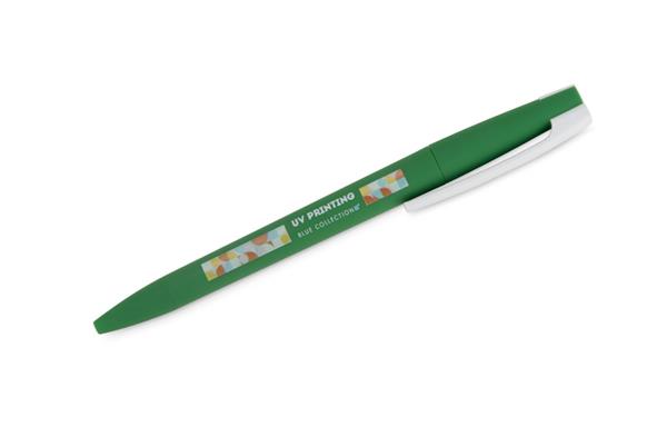 Długopis ZENO wykonany jest z tworzywa o matowym, przyjemnym w dotyku wykończeniu typu soft touch. Jego nowoczesna forma i kontrastujący biały klip nadają mu rozpoznawalny wygląd. Mechanizm przekręcany typu twist umożliwia wygodne wysuwanie wkładu X20 o grubości pisania 1,0 mm. Lekki i poręczny, sprawdzi się w codziennym użytkowaniu, a także jako praktyczny nośnik reklamy z miejscem na logo.