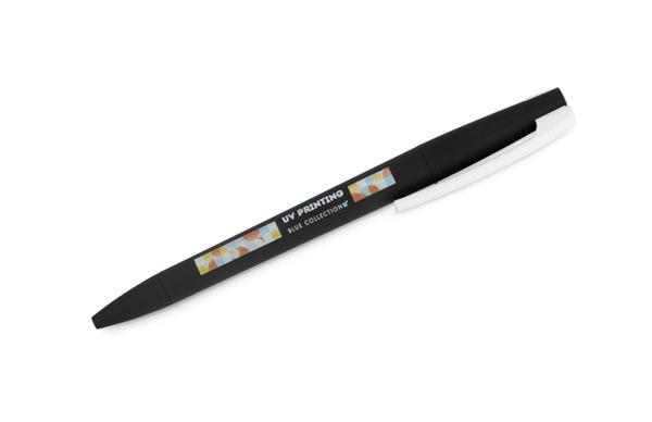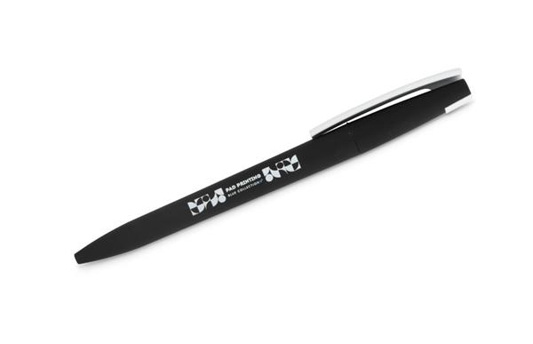 Długopis ZENO wykonany jest z tworzywa o matowym, przyjemnym w dotyku wykończeniu typu soft touch. Jego nowoczesna forma i kontrastujący biały klip nadają mu rozpoznawalny wygląd. Mechanizm przekręcany typu twist umożliwia wygodne wysuwanie wkładu X20 o grubości pisania 1,0 mm. Lekki i poręczny, sprawdzi się w codziennym użytkowaniu, a także jako praktyczny nośnik reklamy z miejscem na logo.