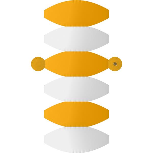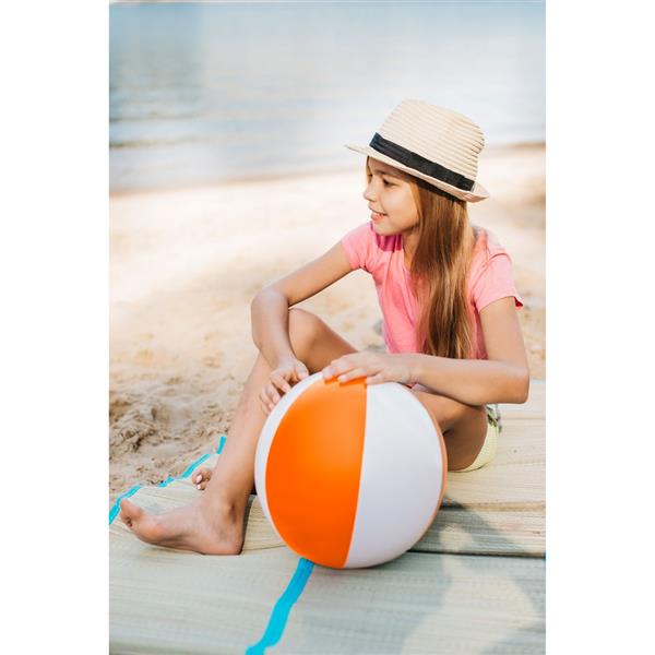 Dmuchana piłka plażowa z białymi i kolorowymi panelami, rozmiar jednego panelu: 12 x 30 cm, obwód nadmuchanej piłki: ok. 81 cm, produkt wykonany z PVC