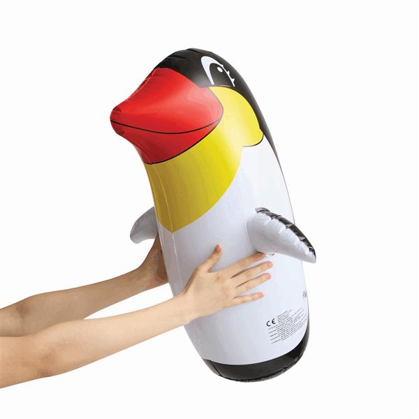 Dmuchany pingwin STAND UP z dolną komorą napełnianą wodą lub piaskiem. Rozkołysany pingwin wraca do pozycji pionowej.