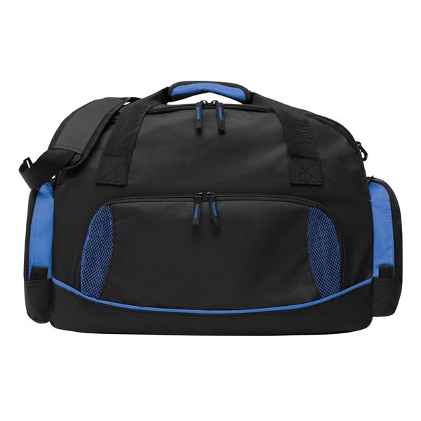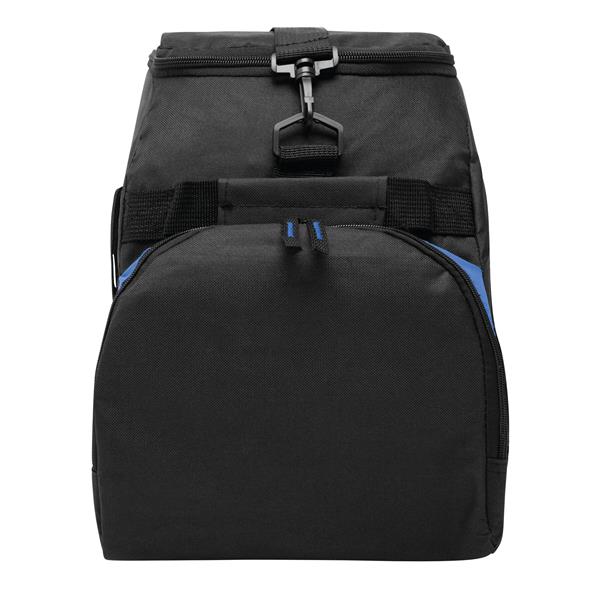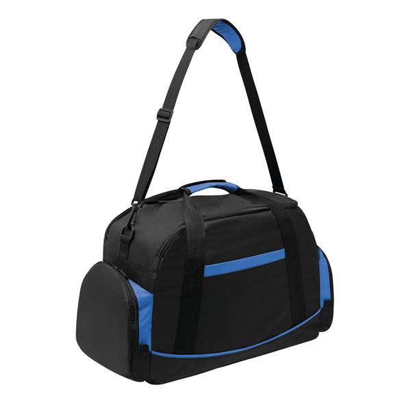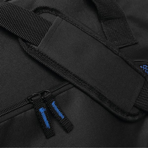 Torba sportowa DOME z kieszenią na obuwie, główną komorą i 2 bocznymi kieszeniami na zamek błyskawiczny, otwartą kieszenią z tyłu, wodoodpornym dnem, zawiera regulowany i odpinany pasek na ramię. Materiał: 600D Poliester Kolor: czarny, niebieski Tagi: Torby sportowe,torby,bagaż,artykuły sportowe,fitness