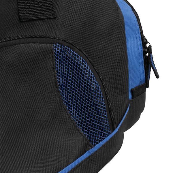 Torba sportowa DOME z kieszenią na obuwie, główną komorą i 2 bocznymi kieszeniami na zamek błyskawiczny, otwartą kieszenią z tyłu, wodoodpornym dnem, zawiera regulowany i odpinany pasek na ramię.