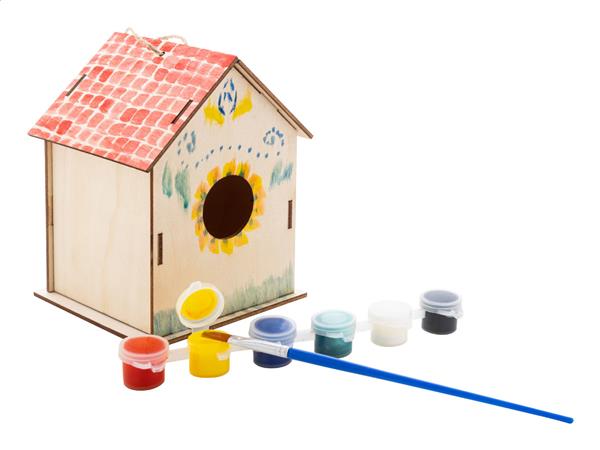 Drewniany domek dla ptaków DIY z zestawem do malowania akwarelami (z pędzlem i 6 farbami). Dostarczany na płasko.