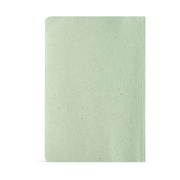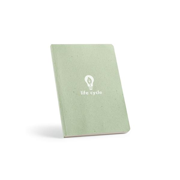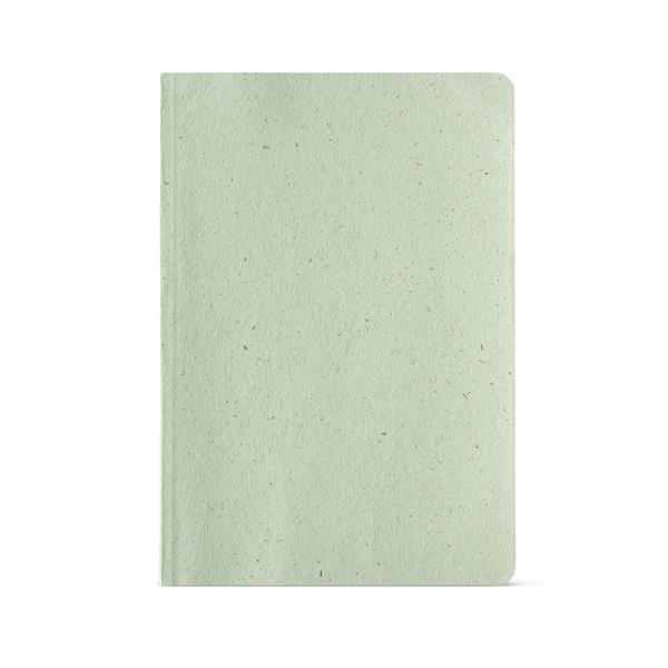 Wykonany z dbałością notatnik A5 z okładką z trawy cytrynowej to innowacyjny i przyjazny dla środowiska nośnik myśli i pomysłów. Zawiera 196 stron w kropki o gramaturze 80 g/m2 pochodzących z recyklingu, ma miękką okładkę.