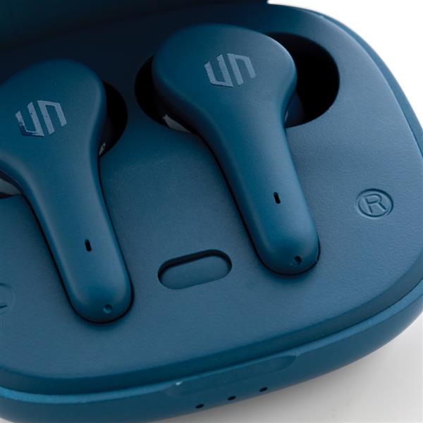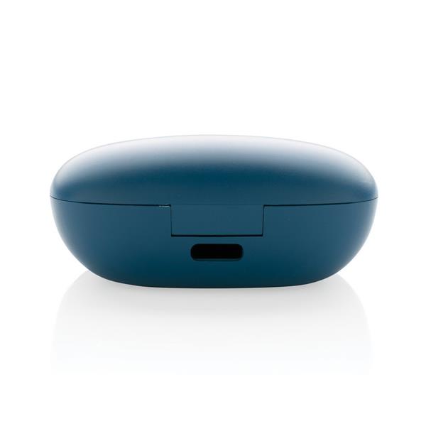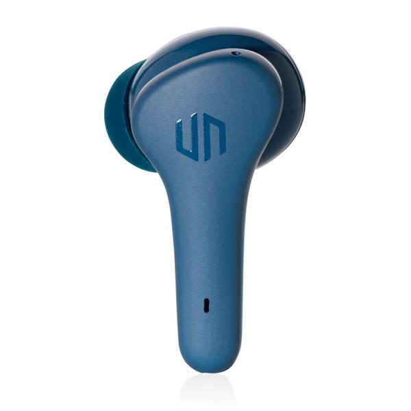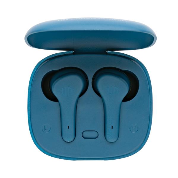Bezprzewodowe słuchawki douszne z systemem redukcji szumów z otoczenia (ENC), który doskonale sprawdza się podczas rozmów telefonicznych, słuchawki wyposażone są w tryb niskiego opóźnienia (65 ms), dzięki któremu opóźnienie pomiędzy ekranem a dźwiękiem jest minimalizowane, wodoodporne IPX4 (całkowita ochrona przed spryskiwaniem i zachlapaniem wodą z różnych kierunków z natężeniem do 10 litrów na minutę), dotykowy panel sterowania, wbudowany mikrofon, funkcja odbierania połączeń, do 5 godzin odtwarzania na jednym ładowaniu, etui ładujące zapewnia 20 godzin odtwarzania, nie zawiera PVC, opakowanie nie zawiera plastiku, ślad węglowy produktu: 0,93 kg CO2