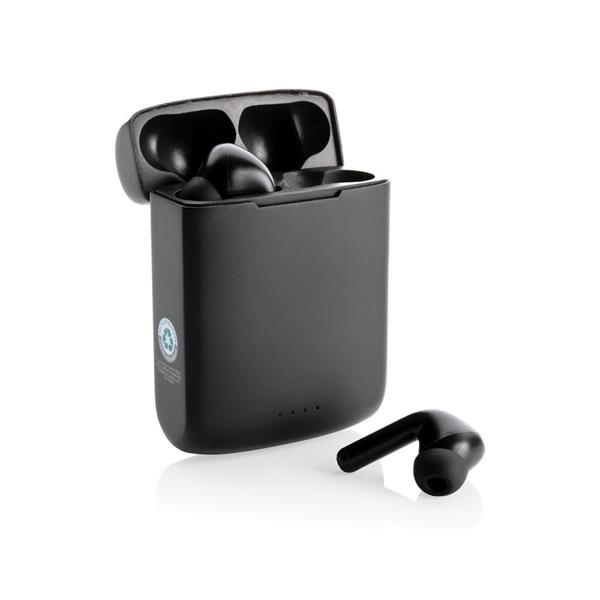 Słuchawki bezprzewodowe BT 5.3, zintegrowany panel słoneczny do ładowania słuchawek, prędkość ładowania solarnego 5V/0,05A, wbudowany mikrofon, funkcja odbierania połączeń, wykonane z ABS z recyklingu z certyfikatem RCS, całkowita zawartość materiałów z recyklingu obliczona w oparciu o wagę całkowitą przedmiotu: 19%, czas odtwarzania na średnim poziomie głośności do 5 godzin, zasięg do 10 m, kabel z TPE z recyklingu z certyfikatem RCS w komplecie, w pudełku z papieru kraftowego z certyfikatem FSC® mix, ślad węglowy produktu: 0,82 kg CO2
