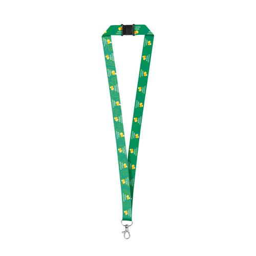Smycz sublimacyjna poliester z recyklingu (100% rPET) z karabińczykiem oraz zamkiem bezpieczeństwa. Wyprodukowano w Europie. Można znakować po obu stronach smyczy. Obszar personalizacji/strona: 20 x 940 mm. Podane ceny zawierają sublimację. 20 x 470 mm