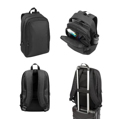 Plecak na laptopa z poliestru z recyklingu o wysokiej gęstości 600D, przód z poliestru z recyklingu o wysokiej gęstości 900D z powłoką odporną na wodę i podszewką z poliestru z recyklingu 210D. Główna komora z wyściełaną przegrodą na laptopy do 17.3″ i przestronną kieszenią przednią z kilkoma wewnętrznymi kieszeniami. Boczna kieszeń idealna do noszenia butelki i pleców z dodatkowym wyściełaniem i paskiem na wózek. Pojemność do 24 l. 300 x 400 x 180 mm