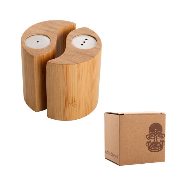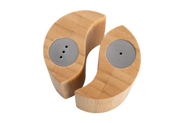 Eleganckie słoiczki na sól i pieprz, które łączą się razem jak „yin i yang“, będą doskonałym dodatkiem do każdej kuchni. Wykonane są z bambusa. Zapakowane w prezentowe pudełko Vanilla Season. Rozmiar: 70 x x o 70 mm L2 (grawer laserowy): 3 x 3 cm T3 (tampodruk): 5 x 3 cm Kolor: Brązowy