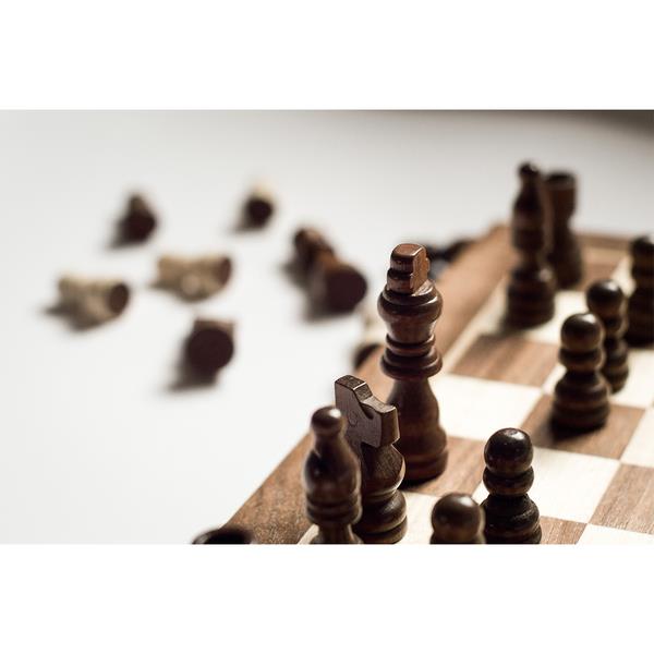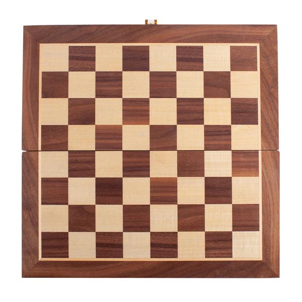 Tradycyjne, solidne szachy wykonane z drewna kauczukowego z rzeźbionymi figurami z drewna brzozowego. Gra rozwijająca myślenie strategiczne i umiejętność planowania działań.