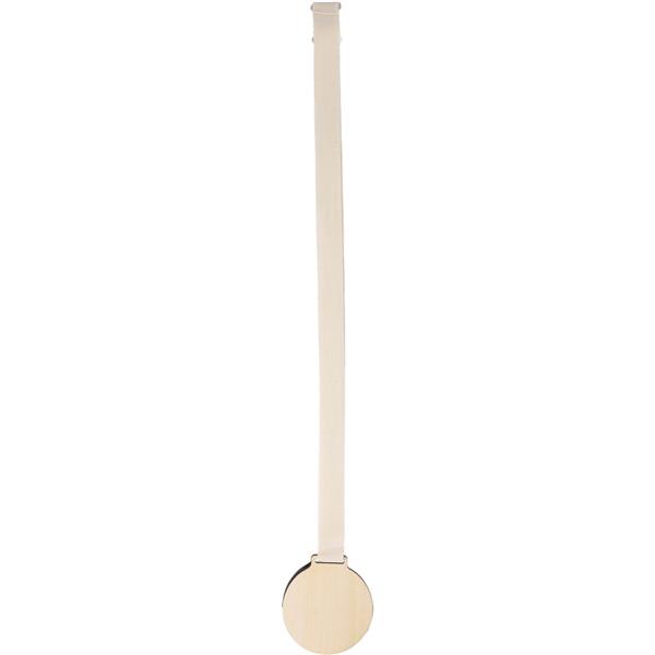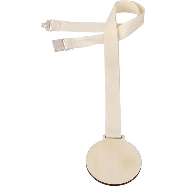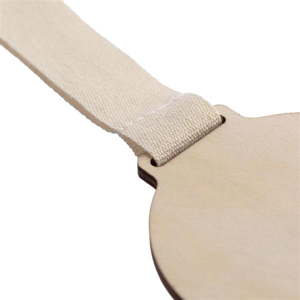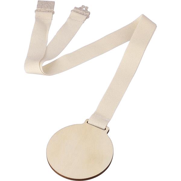 Drewniany medal, średnica: 7 cm, grubość: 4 mm, bawełniana smycz 90×2 cm z zapięciem bezpieczeństwa w komplecie