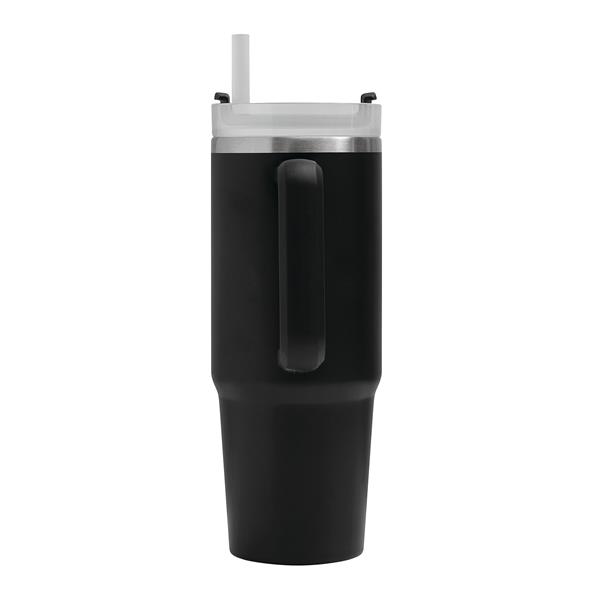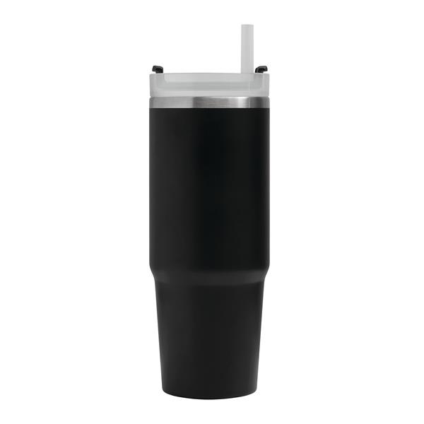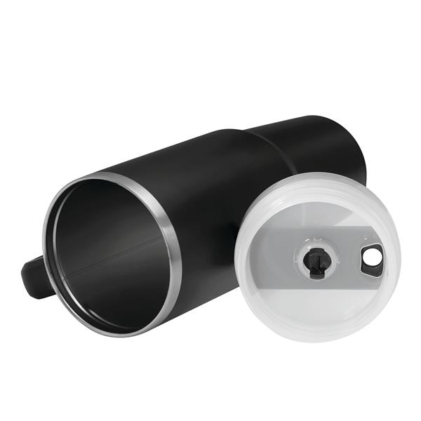 Próżniowy kubek do picia DRINK DELUXE. Z podwójną izolacją – na zewnątrz i wewnątrz wykonany jest ze stali nierdzewnej. Posiada praktyczny uchwyt i szczelną, przezroczystą, plastikową pokrywkę z silikonową uszczelką. Ma zarówno wbudowany otwór do picia, jak i słomkę. Pojemność butelki to ok. 900 ml.
