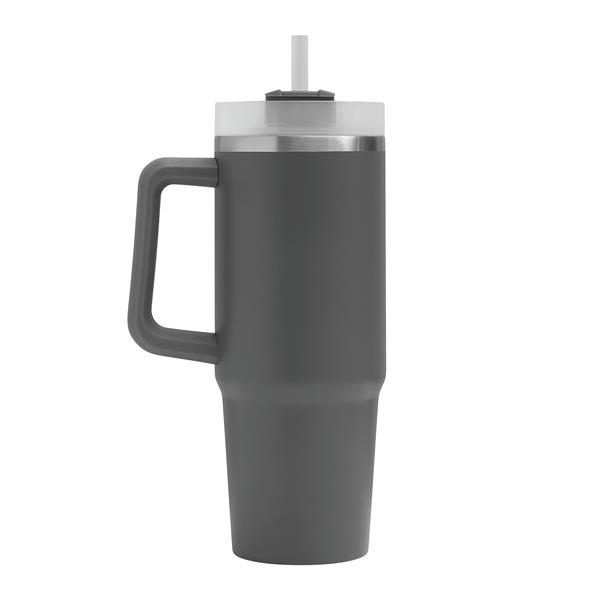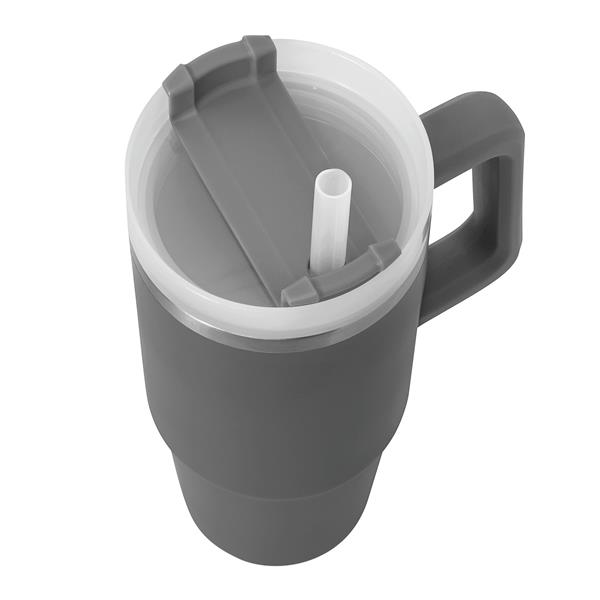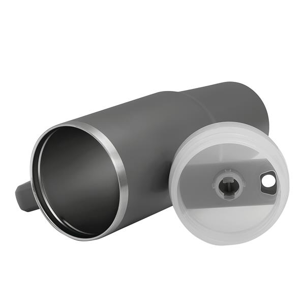 Próżniowy kubek do picia DRINK DELUXE. Z podwójną izolacją – na zewnątrz i wewnątrz wykonany jest ze stali nierdzewnej. Posiada praktyczny uchwyt i szczelną, przezroczystą, plastikową pokrywkę z silikonową uszczelką. Ma zarówno wbudowany otwór do picia, jak i słomkę. Pojemność butelki to ok. 900 ml.