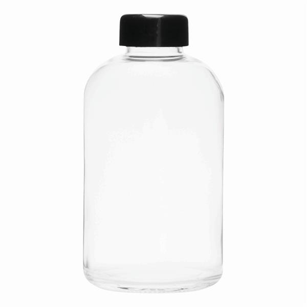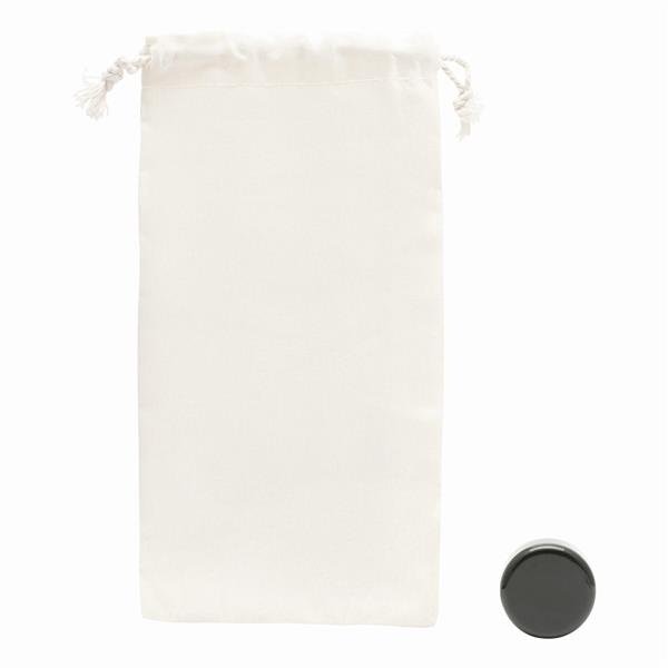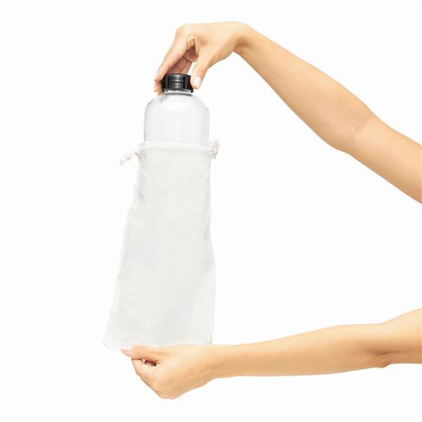 Szklana butelka do picia DRINK HEALTHY w bawełnianym woreczku, z zakrętką. Pojemność ok. 550 ml.