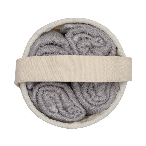 Zestaw ręczników DRY OFF, 5 elementów. Bardzo chłonne i szybko schnące, miękkie i puszyste, w dopasowanym koszu z odpinanym uchwytem do przenoszenia. Materiał: Bawełna 300 g/m2/Poliester Kolor: szary Tagi: Ręczniki,tekstylia,akcesoria łazienkowe