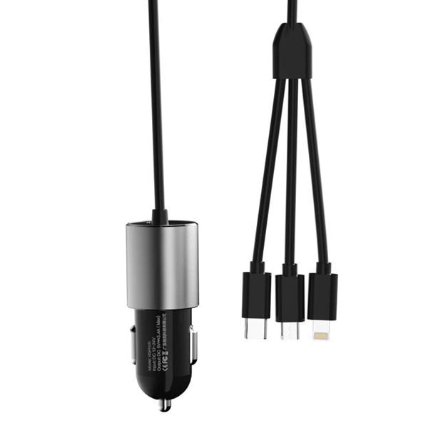 Dudao 3w1 ładowarka samochodowa USB 3,4 A wbudowany kabel Lightning / USB Typ C / micro USB (R5ProN black)