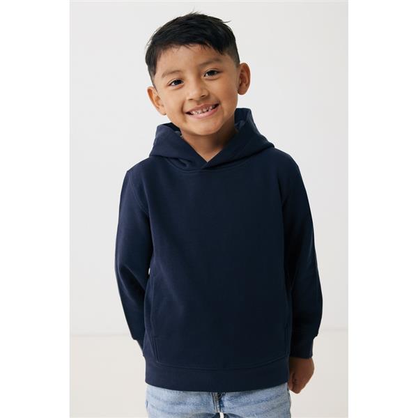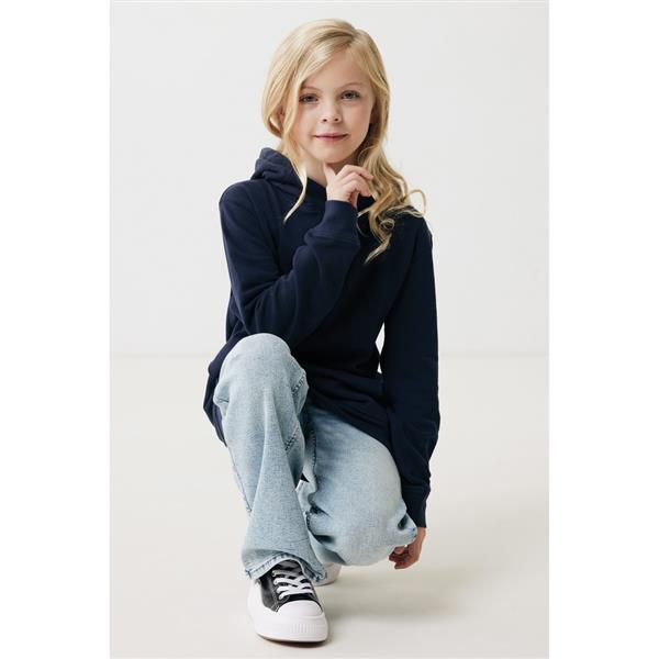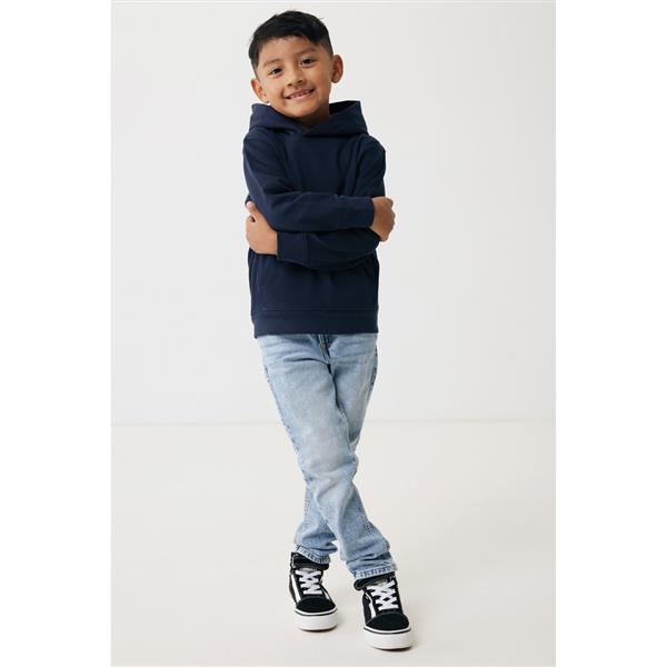 Bluza z kapturem i kieszeniami, dziecięca, dwuwarstwowy kaptur, krój modern, ściągacze, wykonana w 30% z bawełny z recyklingu i w 70% z bawełny organicznej o gramaturze 290 g/m2, bez dodatku poliestru, posiada wbudowany znacznik AWARE™, który potwierdza wykorzystanie materiałów z recyklingu, posiada kod QR na metce, który prowadzi do cyfrowego paszportu produktu, 2% wpływów z każdego sprzedanego produktu jest przekazywane na rzecz Water.org