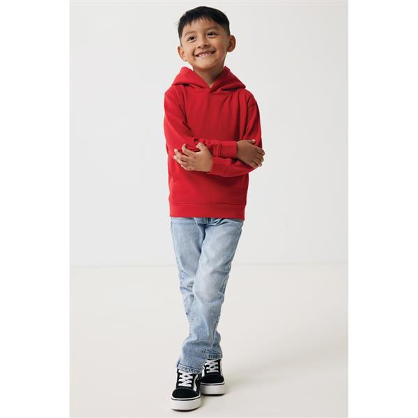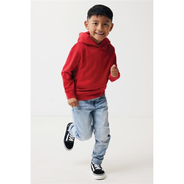 Bluza z kapturem i kieszeniami, dziecięca, dwuwarstwowy kaptur, krój modern, ściągacze, wykonana w 30% z bawełny z recyklingu i w 70% z bawełny organicznej o gramaturze 290 g/m2, bez dodatku poliestru, posiada wbudowany znacznik AWARE™, który potwierdza wykorzystanie materiałów z recyklingu, posiada kod QR na metce, który prowadzi do cyfrowego paszportu produktu, 2% wpływów z każdego sprzedanego produktu jest przekazywane na rzecz Water.org