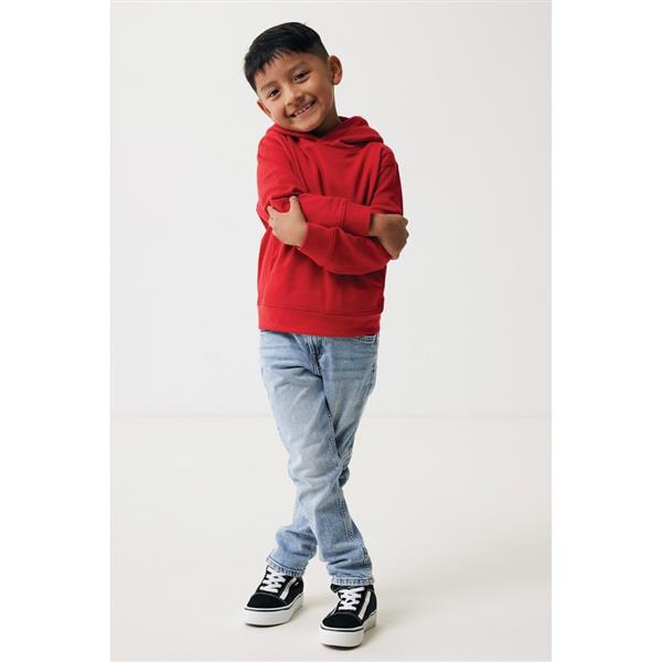 Bluza z kapturem i kieszeniami, dziecięca, dwuwarstwowy kaptur, krój modern, ściągacze, wykonana w 30% z bawełny z recyklingu i w 70% z bawełny organicznej o gramaturze 290 g/m2, bez dodatku poliestru, posiada wbudowany znacznik AWARE™, który potwierdza wykorzystanie materiałów z recyklingu, posiada kod QR na metce, który prowadzi do cyfrowego paszportu produktu, 2% wpływów z każdego sprzedanego produktu jest przekazywane na rzecz Water.org