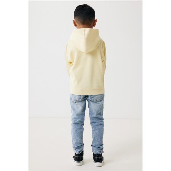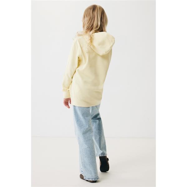 Bluza z kapturem i kieszeniami, dziecięca, dwuwarstwowy kaptur, krój modern, ściągacze, wykonana w 30% z bawełny z recyklingu i w 70% z bawełny organicznej o gramaturze 290 g/m2, bez dodatku poliestru, posiada wbudowany znacznik AWARE™, który potwierdza wykorzystanie materiałów z recyklingu, posiada kod QR na metce, który prowadzi do cyfrowego paszportu produktu, 2% wpływów z każdego sprzedanego produktu jest przekazywane na rzecz Water.org