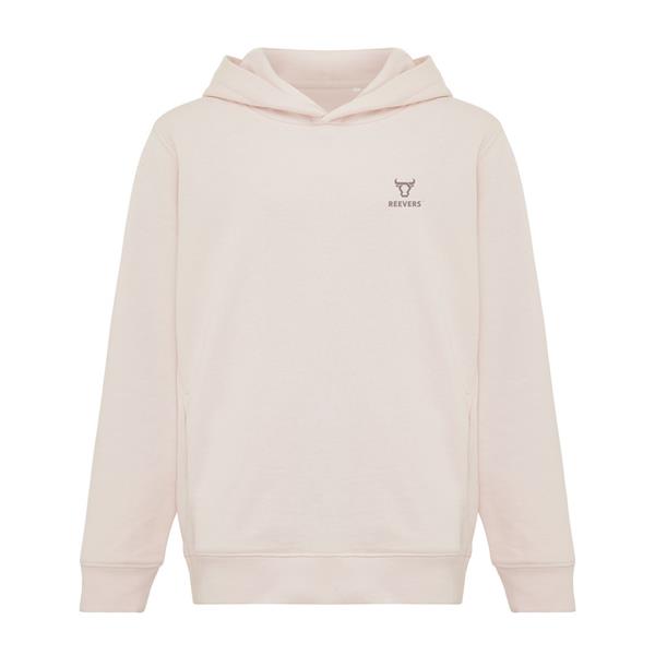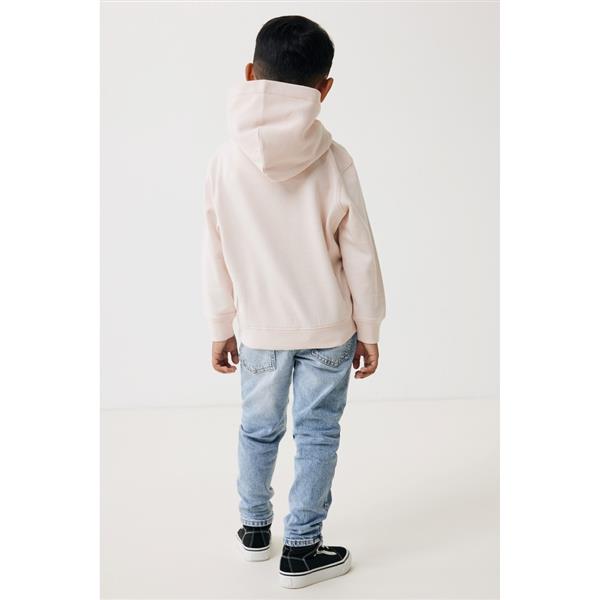 Bluza z kapturem i kieszeniami, dziecięca, dwuwarstwowy kaptur, krój modern, ściągacze, wykonana w 30% z bawełny z recyklingu i w 70% z bawełny organicznej o gramaturze 290 g/m2, bez dodatku poliestru, posiada wbudowany znacznik AWARE™, który potwierdza wykorzystanie materiałów z recyklingu, posiada kod QR na metce, który prowadzi do cyfrowego paszportu produktu, 2% wpływów z każdego sprzedanego produktu jest przekazywane na rzecz Water.org