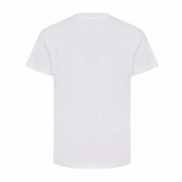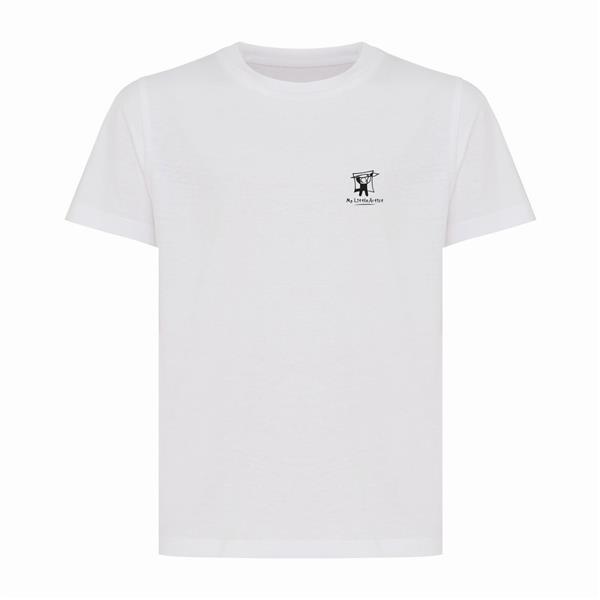 Koszulka dziecięca, regularny krój, okrągły dekolt, krótkie rękawy, wykonana w 30% z bawełny z recyklingu i w 70% z bawełny organicznej o gramaturze 160 g/m2, posiada wbudowany znacznik AWARE™, który potwierdza wykorzystanie materiałów z recyklingu, posiada kod QR na metce, który prowadzi do cyfrowego paszportu produktu, 2% wpływów z każdego sprzedanego produktu z kolekcji Impact jest przekazywane na rzecz Water.org, ślad węglowy produktu: 2,87 kg CO2