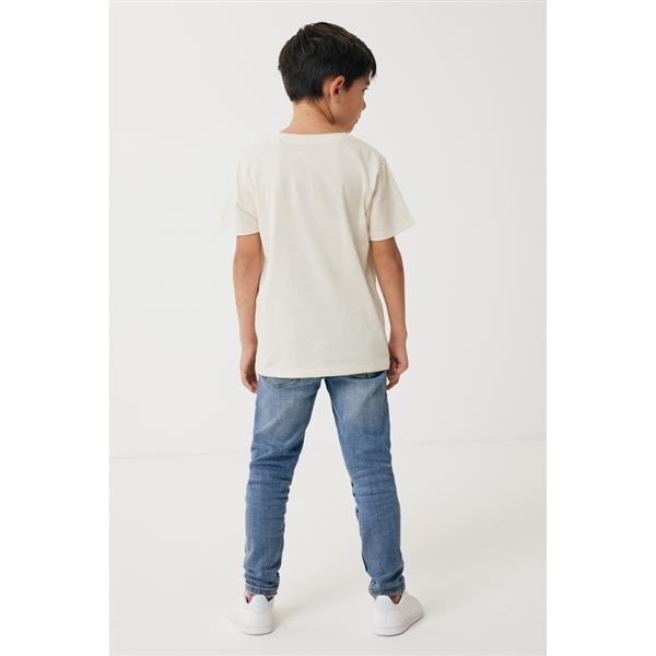 Koszulka dziecięca, regularny krój, okrągły dekolt, krótkie rękawy, wykonana w 30% z bawełny z recyklingu i w 70% z bawełny organicznej o gramaturze 160 g/m2, posiada wbudowany znacznik AWARE™, który potwierdza wykorzystanie materiałów z recyklingu, posiada kod QR na metce, który prowadzi do cyfrowego paszportu produktu, 2% wpływów z każdego sprzedanego produktu z kolekcji Impact jest przekazywane na rzecz Water.org, ślad węglowy produktu: 2,81 kg CO2