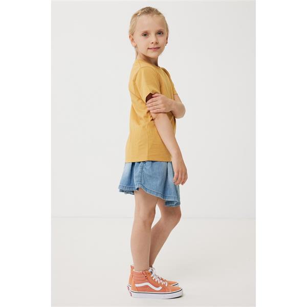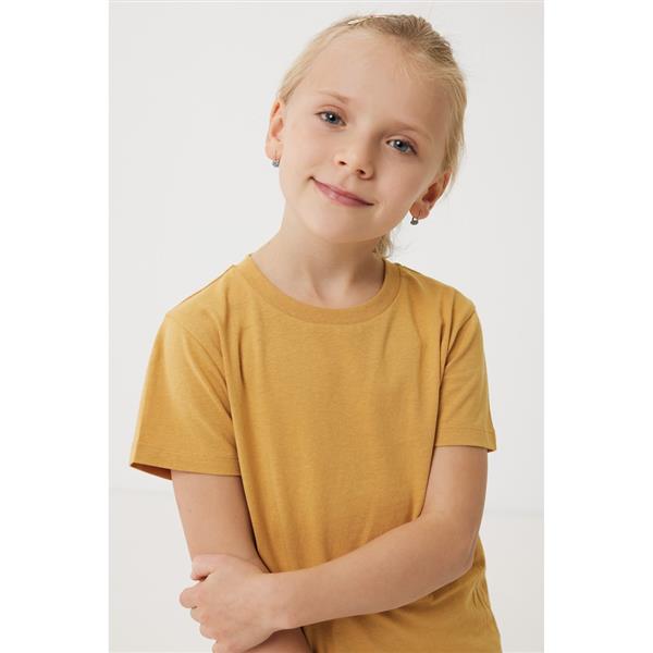 Koszulka dziecięca, regularny krój, okrągły dekolt, krótkie rękawy, wykonana w 30% z bawełny z recyklingu i w 70% z bawełny organicznej o gramaturze 160 g/m2, posiada wbudowany znacznik AWARE™, który potwierdza wykorzystanie materiałów z recyklingu, posiada kod QR na metce, który prowadzi do cyfrowego paszportu produktu, 2% wpływów z każdego sprzedanego produktu z kolekcji Impact jest przekazywane na rzecz Water.org, ślad węglowy produktu: 3,23 kg CO2