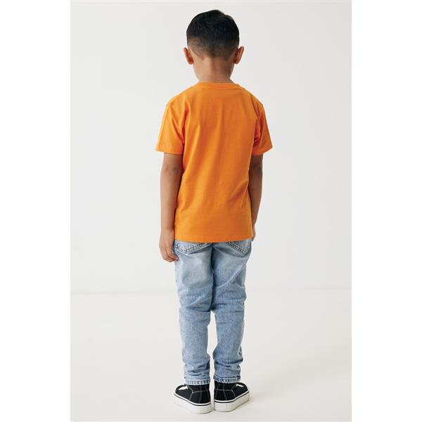 Koszulka dziecięca, regularny krój, okrągły dekolt, krótkie rękawy, wykonana w 30% z bawełny z recyklingu i w 70% z bawełny organicznej o gramaturze 160 g/m2, posiada wbudowany znacznik AWARE™, który potwierdza wykorzystanie materiałów z recyklingu, posiada kod QR na metce, który prowadzi do cyfrowego paszportu produktu, 2% wpływów z każdego sprzedanego produktu z kolekcji Impact jest przekazywane na rzecz Water.org, ślad węglowy produktu: 3,17 kg CO2