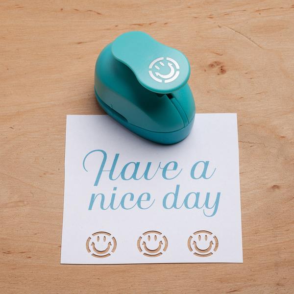 „Uśmiechnięty”, ozdobny dziurkacz do papieru. Doskonały do zabawy i dekorowania np. kartek okolicznościowych i wielu innych projektów plastycznych. Średnica wyciętego wzoru 16 mm.