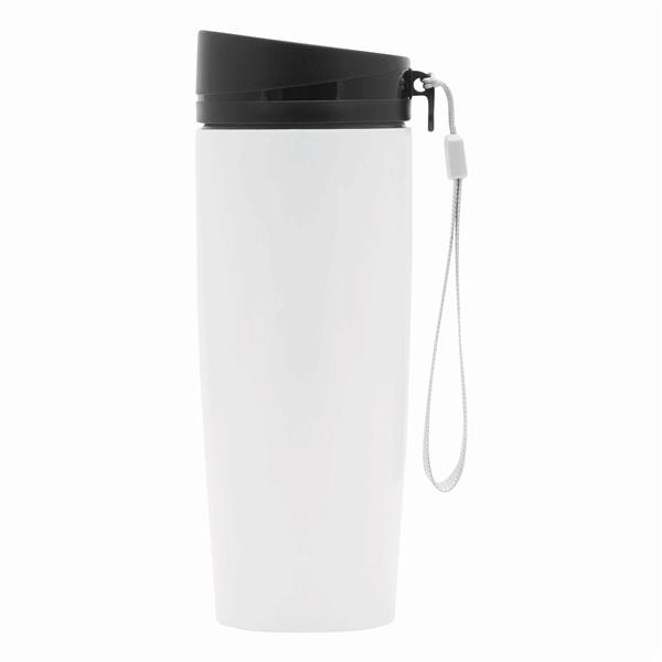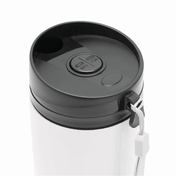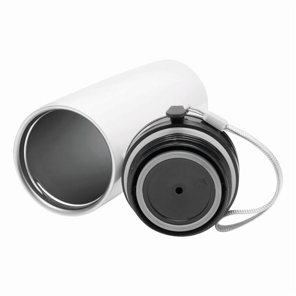Kubek termiczny o podwójnych ściankach EARLY MORNING wewnątrz i na zewnątrz stal nierdzewna, plastikowe odkręcane wieczko z bezpieczną zakrętką, przyciskiem OPEN/CLOSE i otworem do picia, pojemność ok. 380 ml, z haczykiem do zawieszenia. Materiał: Stal nierdzewna/Plastik/Silikon/Nylon Kolor: biały Tagi: Kubki,filiżanki,przybory kuchenne,artykuły gospodarstwa domowego,kubki/garnki izolowane,kubki/garnki termiczne,akcesoria podróżne,kubki do kawy