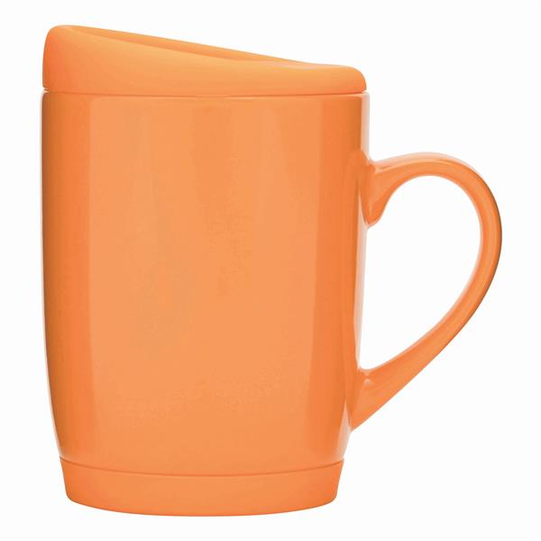 Kubek ceramiczny EASY DAY ze zdejmowaną, silikonową podstawką i silikonową pokrywką. Dobrze się trzyma. Pojemność ok. 350 ml. W białym pudełku.