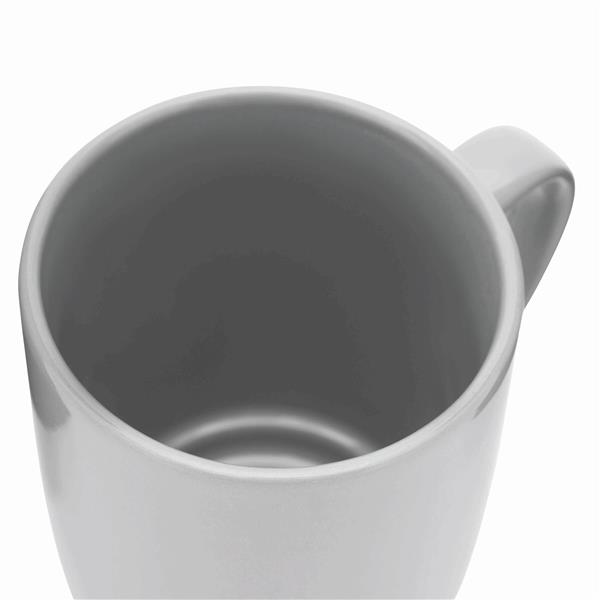 Kubek ceramiczny EASY DAY ze zdejmowaną, silikonową podstawką i silikonową pokrywką. Dobrze się trzyma. Pojemność ok. 350 ml. W białym pudełku.
