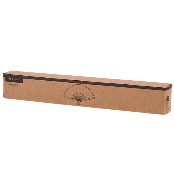 Składany wachlarz ECO COOL: wykonany z poliestru pochodzącego z recyklingu, zamontowany na solidnych drewnianych listwach.