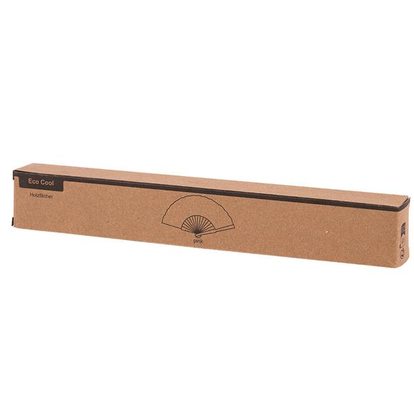 Składany wachlarz ECO COOL: wykonany z poliestru pochodzącego z recyklingu, zamontowany na solidnych drewnianych listwach.