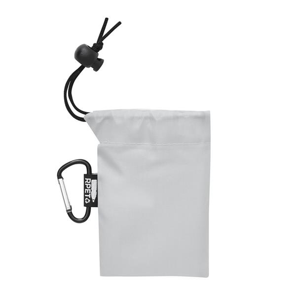 Poncho przeciwdeszczowe ECO SAFE: z kapturem, rozmiar uniwersalny, zapakowane w torbę RPET ze sznurkiem i karabińczykiem.