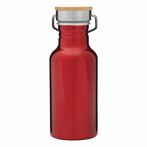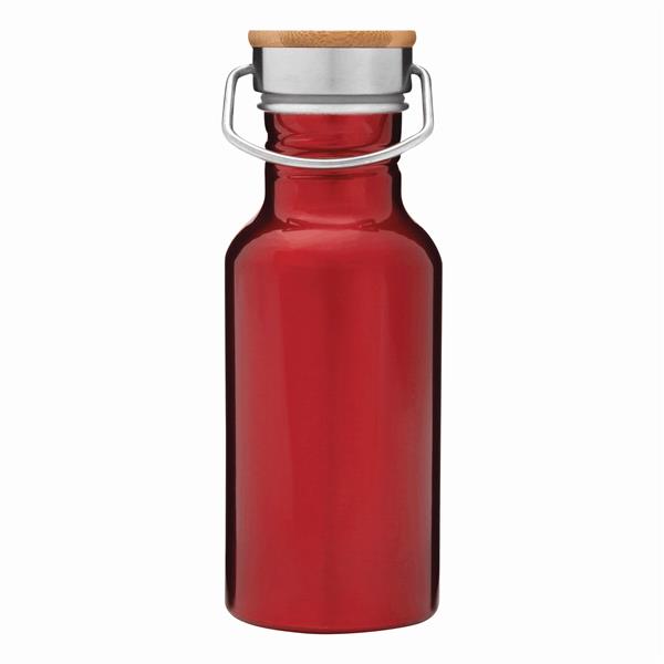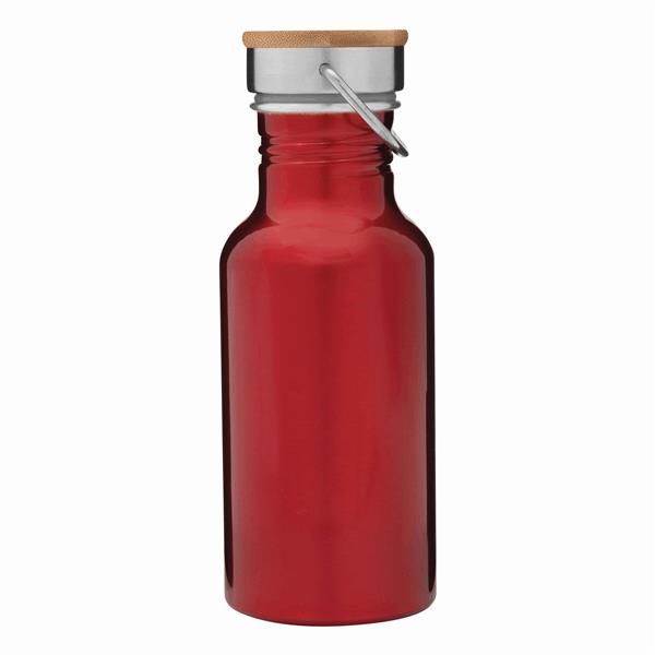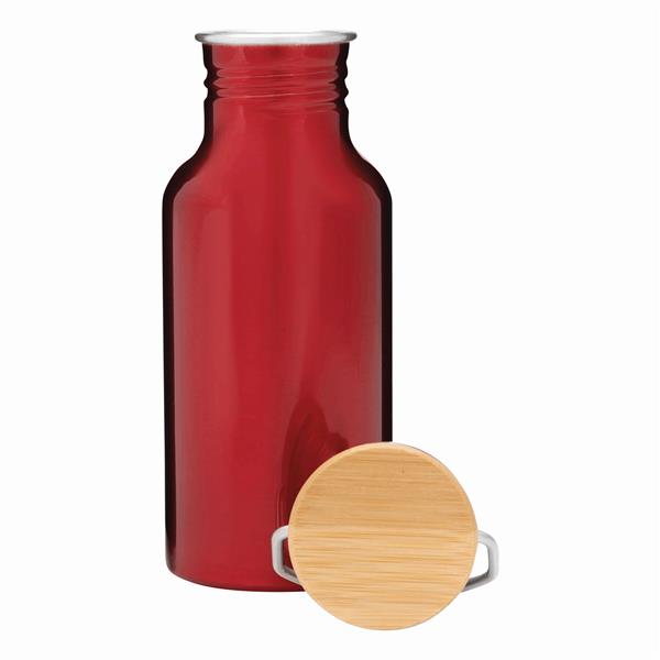Aluminiowa butelka ECO TRANSIT z bambusową zakrętką i uchwytem do przenoszenia. Pojemność ok. 550 ml.