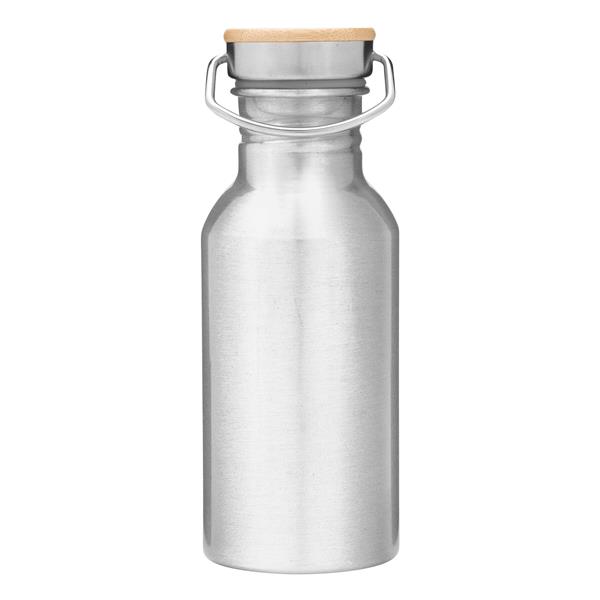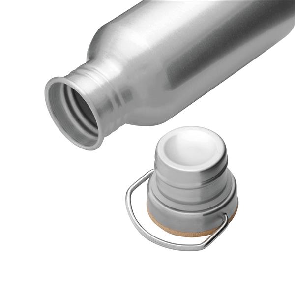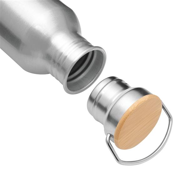 Aluminiowa butelka ECO TRANSIT z bambusową zakrętką i uchwytem do przenoszenia. Pojemność ok. 550 ml.