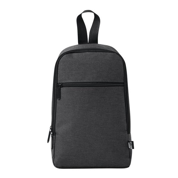 Torba na ramię EDERN. Wykonana jest z poliestru pochodzącego z recyklingu (rPET). Ma główną komorę zapinaną na zamek błyskawiczny z wsuwaną kieszenią, przednią kieszeń zapinaną na zamek błyskawiczny, uchwyt do przenoszenia, wyściełany i regulowany pasek na ramię oraz wyściełany tył.