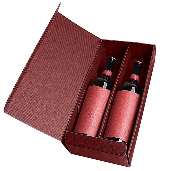 Ekskluzywny kartonik na wino z miejscem na 2 butelki (nie są dołączone), pudełko otwierane od przodu i z wyjmowaną przegrodą, produkt wykonany z papieru. Wyprodukowany w Europie / made in Europe.