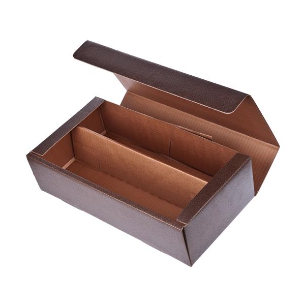 Ekskluzywny kartonik na wino z miejscem na 2 butelki (nie są dołączone), pudełko otwierane od przodu i z wyjmowaną przegrodą, produkt wykonany z papieru. Wyprodukowany w Europie / made in Europe.