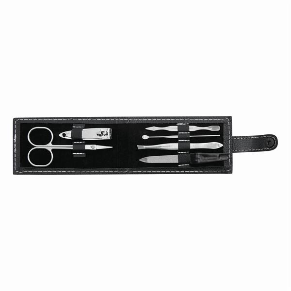 Zestaw do manicure ELAINE zawiera nożyczki do paznokci, pilnik, pęsetę, cążki i 2 przybory do manicure W etui z zatrzaskiem.