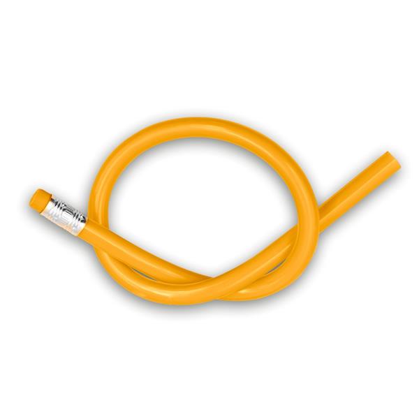 Długi, elastyczny ołówek z błyszczącym wykończeniem i dopasowaną kolorystycznie gumką, giętka budowa odznacza się większą odpornością na złamanie oraz może pomóc w rozładowaniu stresu, końcówka nie jest naostrzona, produkt wykonany z PVC