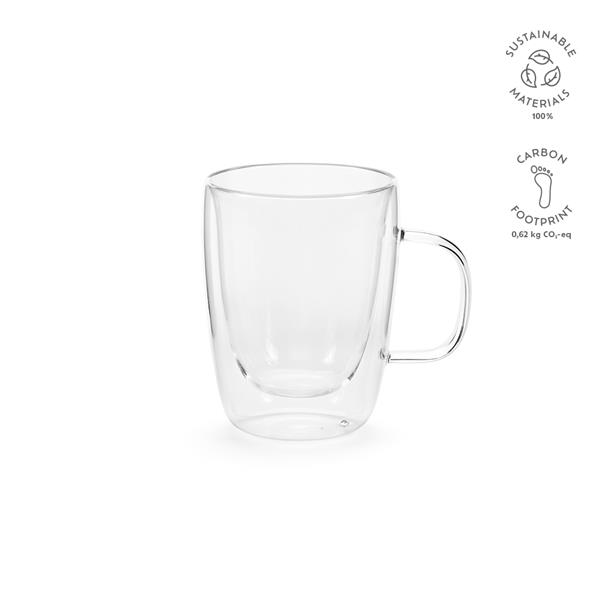 Pij ze stylem dzięki naszemu kubkowi ze szkła borokrzemowego o pojemności 300 ml (260 ml netto). Jego podwójne ścianki zapewniają odpowiednią temperaturę napojów. Idealny do porannych naparów lub wieczornych herbat, jest starannie zapakowany w indywidualne pudełko, dzięki czemu jest przemyślanym prezentem na każdą okazję.