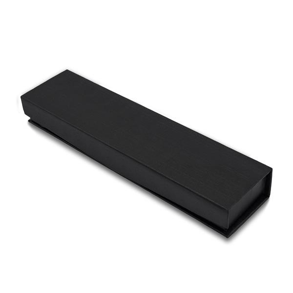 Elegancki długopis o przyjemnym w dotyku, satynowym wykończeniu. Pakowany w upominkowe pudełko. Wkład w kolorze niebieskim. Błyszczący grawerunek w kolorze srebrnym.