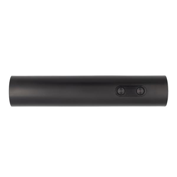 Elektryczny korkociąg do wina z wymiennymi bateriami, smukła metaliczna obudowa, dwa przyciski do obsługi, szybkie wyciąganie korka z butelki, elegancki wygląd idealny do zestawów prezentowych, zalecane użycie baterii alkalicznych dla prawidłowego działania produktu