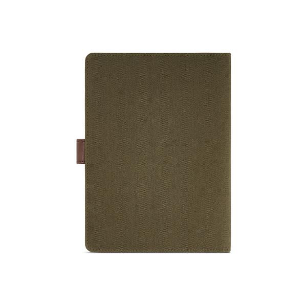 Nasza ekologiczna teczka A5 z płótna bawełnianego z recyklingu ma wygodne zamknięcie na zatrzask z PU, 64 strony w kropki FSC (70 g/m2), kieszeń na telefon, podwójny uchwyt na długopis i miejsca na karty. Stworzona z myślą o zrównoważonym rozwoju, jest stylowym towarzyszem sukcesu.
