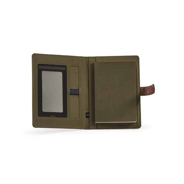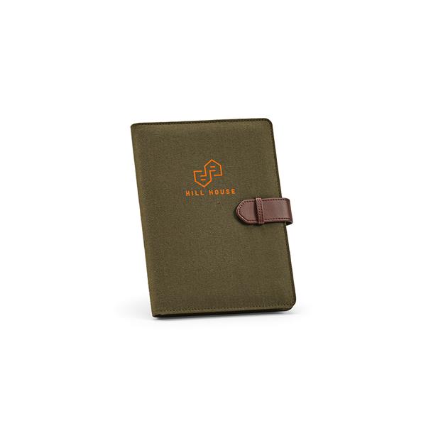 Nasza ekologiczna teczka A5 z płótna bawełnianego z recyklingu ma wygodne zamknięcie na zatrzask z PU, 64 strony w kropki FSC (70 g/m2), kieszeń na telefon, podwójny uchwyt na długopis i miejsca na karty. Stworzona z myślą o zrównoważonym rozwoju, jest stylowym towarzyszem sukcesu. productColour: Ciemny zielony productColourCode: 149 productColourPMS: 18-0523 TCX catalog: Aodaci productCombinedSizeCM: […]