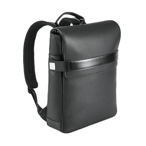 Wyrafinowany plecak z wysokiej jakości teksturowanego polipropylenu, z klapą ukrywającą przednią kieszeń i komorę główną. Komora główna z zamkiem błyskawicznym, wnętrze z 2 wyściełanymi przegrodami na laptopy do 14„ i tablety do 10.5” oraz różnymi kieszeniami. Zawiera boczne zamki błyskawiczne z silnymi magnesami i metalowymi płytkami idealnymi do personalizacji, w pełni wyściełane plecy i paski na ramiona oraz pasek do przenoszenia wózka. Pojemność do 9 litrów. Dostarczany w torbie z włókniny. Produkt zawiera raport z testów jakości. Plecak: 290 x 370 x 90 mm | Torba: 500 x 500 x 80 mm